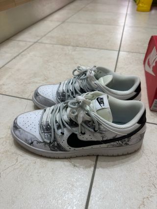 Scarpe Nike Dunk Low con un design unico. - Tomaia in pelle con inserti stampati. - Swoosh Nike nero. - Suola in gomma.
