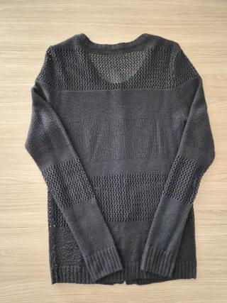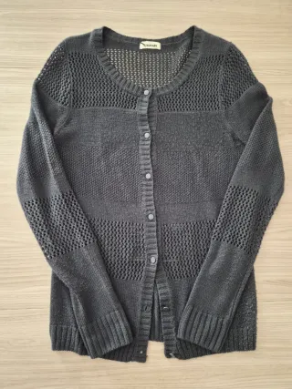 Cardigan da donna in maglia con lavorazione a rete. - Scollo rotondo. - Chiusura con bottoni. - Maniche lunghe. - Inserti in maglia a coste sui polsini e sul fondo.