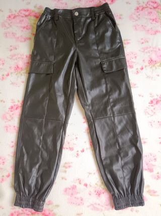 Pantaloni cargo in similpelle con un design moderno. - Vita elasticizzata. - Finte tasche cargo laterali. - Fondo gamba elasticizzato. - Molto comodi e caldi. - Indossati una sola volta per provarli, vendo perché mi stanno grandi, condizioni ottime come nuovi. - Taglia S comoda, veste anche una M.