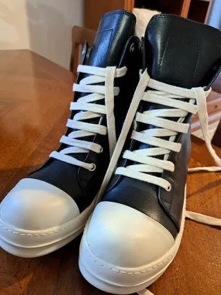 Rick Owens Sneakers Pelle Nere Bianche