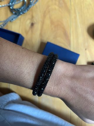 Elegante bracciale del marchio Swarovski, con un design ornato di cristalli brillanti. Colore nero. Design con incastonatura di cristalli.