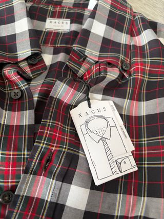 Camicia a quadri da uomo, un capo versatile per ogni occasione. - Fantasia a quadri con colori nero e rosso. - Tessuto leggero e confortevole. - Pagata 140€ e mai indossata