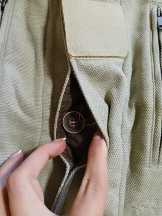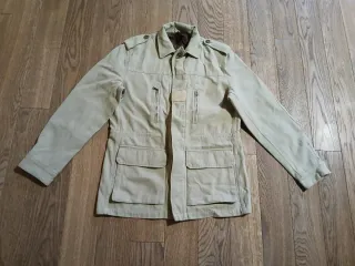 Usato in ottime condizioni. Giubbotto mezza stagione, tinta unita di colore verde chiaro, TG. L da uomo con chiusura frontale a bottoni, due tasche con chiusura a zip sulla parte alta frontale, due tasche frontali con chiusura a bottoni, taschino interno con chiusura a bottoncino, elastico interno e tessuto 100% cotone. MISURE: spalle 48 cm, da ascella a ascella 60 cm e lunghezza 77 cm.