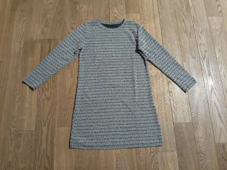 Usato in ottime condizioni. Abito casual a manica lunga TG. S da donna con fantasia geometrica su sfondo a tinta unita di colore grigio chiaro e tessuto 78% poliestere, 17% viscosa e 5% elastan. MISURE: spalle 38 cm, da ascella a ascella 48 cm e lunghezza 88 cm.