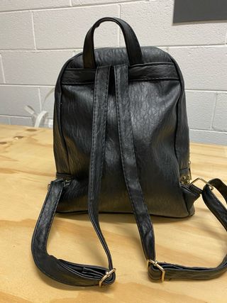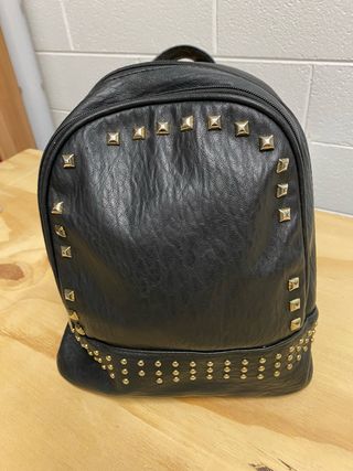 Zaino in ecopelle di colore nero, impreziosito da borchie dorate. - Dettagli con borchie a piramide sulla parte frontale. - Bordatura inferiore con borchie tonde. - Materiale: ecopelle.