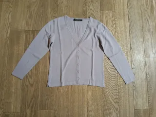 Usato in ottime condizioni. Cardigan corto, tinta unita di colore lilla, TG. L da donna con scollo a V, chiusura frontale a bottoncini e tessuto 100% lana Merino. MISURE: spalle 39 cm, da ascella a ascella 45 cm e lunghezza 54 cm.