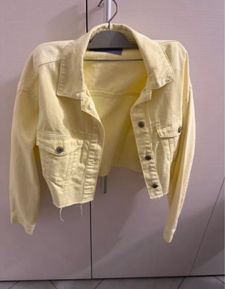 Giacca in denim dal taglio corto e moderno, con un vivace colore giallo fluo. - Design con tasche sul petto. - Orlo sfrangiato per un look grintoso. - Chiusura con bottoni.