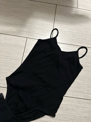 Body nero con spalline sottili, perfetto per ogni occasione. - Tessuto a costine elasticizzato. - Scollo a V. - Chiusura a bottoni sul cavallo. Nuovo s