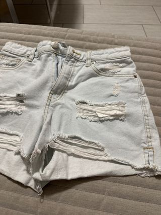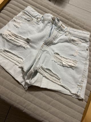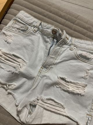 Shorts in denim con un look grintoso e alla moda. - Design strappato - Vita media - Chiusura con zip e bottone