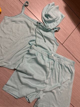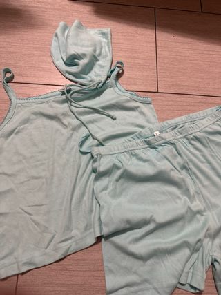 Set pigiama estivo composto da canotta e pantaloncino. - Canotta con spalline sottili e bordino smerlato. - Pantaloncino corto con elastico in vita.