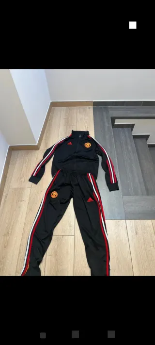 Completo tuta Adidas del Manchester United. - Tuta da allenamento. - Colore nero con dettagli rossi e bianchi sulle maniche e sui pantaloni. - Logo Manchester United sul petto e sulla gamba. - Logo Adidas sulle maniche e sui pantaloni.