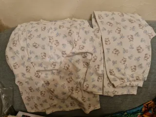 Comodo pigiama da donna con una dolce fantasia di orsetti. - Maniche lunghe. - Pantaloni lunghi con elastico in vita. - Tessuto morbido e confortevole. Taglia pantaloni 44
