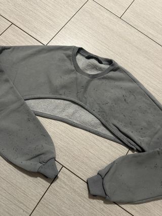 Felpa corta dal design unico, perfetta per un look audace. - Fantasia a macchie scure. - Maniche lunghe con polsini. - Scollo rotondo.
