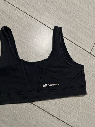 Top sportivo da donna. - Design a taglio vivo. - Tessuto morbido e traspirante. - Logo discreto sul davanti.