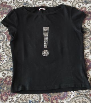 T-shirt nera mezze maniche di Max and Co. Con punto esclamativo di brillato In ottimo stato, manca però etichetta per composizione e lavaggio Taglia M Misure comunque nelle foto