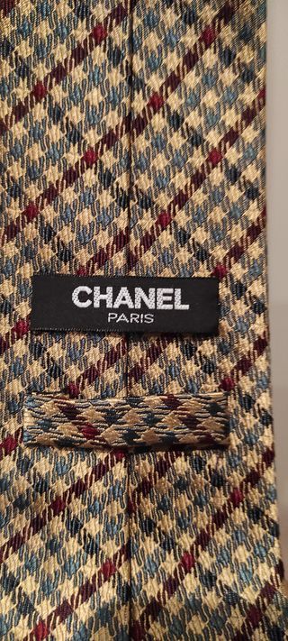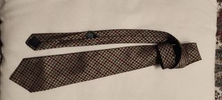 Bellissima cravatta impura seta di Chanel nei colori oro bordeaux e grigio Usata una volta