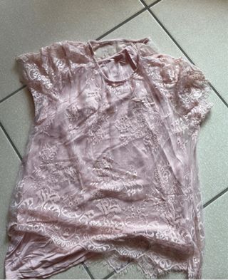 Bellissimo top Lormar color rosa, taglia M.Dettagli in pizzo delicato. Perfetto per un look romantico. - Maniche corte - Vestibilità comoda - Tessuto leggero