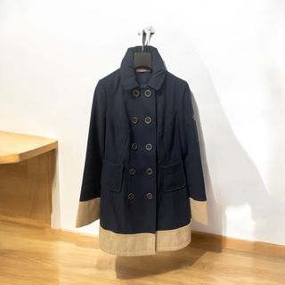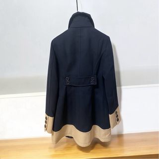 Cappotto nero taglia conformata; è leggermente scucito sulla spalla destra, ma si puó sistemare facilmente. È una 41 taglia comoda, conformata.