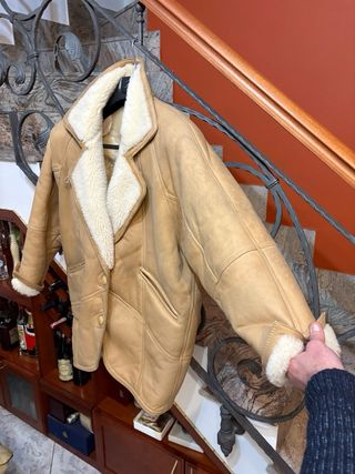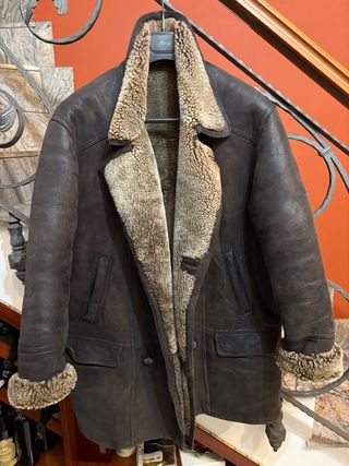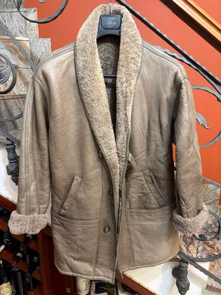 Elegante cappotto montone shearling, realizzato in vera pelle morbida e comoda . Un capo vintage di qualita, molto bello ideale per le giornate fredde. Ben tenuto, non ha strappi ne tagli, internamente integro, usura del suo tempo ma ben conservato, bellissimo anche il colore. La taglia ce foto etichetta che indica la taglia fi varie nazionalita. Ottimo rapporto qualità prezzo. Tieni presente che sono capi vintage possono avere segni naturali del tempo - Materiale: vera pelle e montone shearling. - Prodotto di qualita - Capo vintage - Chiusura con bottoni. - Tasche frontali applicate.
