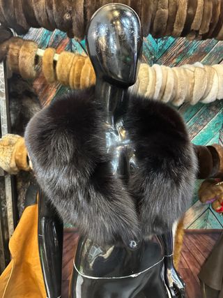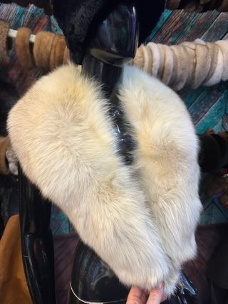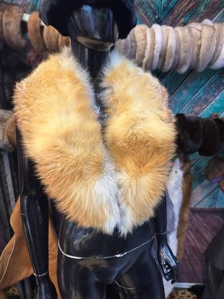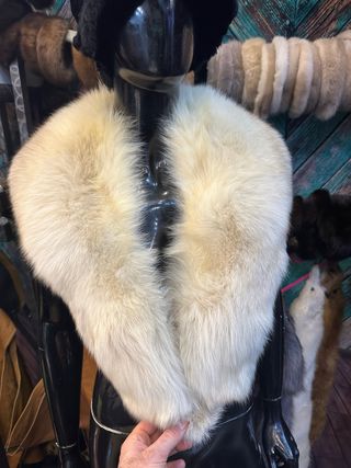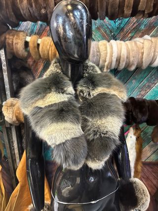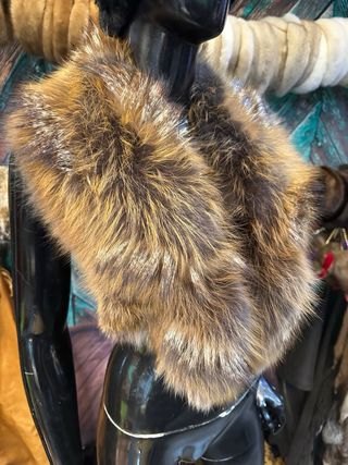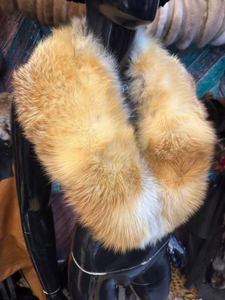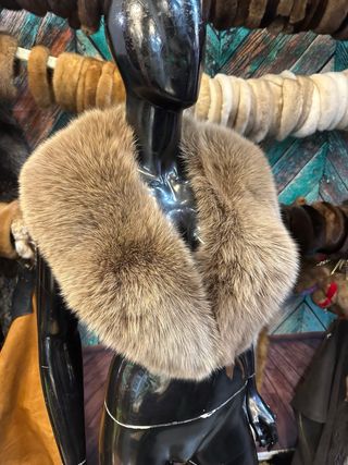 Collo in pelliccia di volpe, un accessorio elegante e caldo. - Morbido al tatto. - Dettagli in pelliccia chiara e scura.