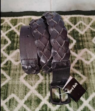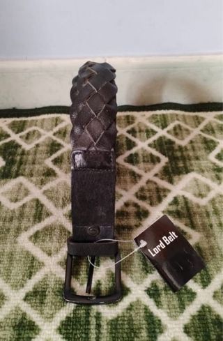 Cintura in pelle marrone con fibbia rettangolare. - Fibbia in metallo con logo inciso. - Pelle morbida e resistente.