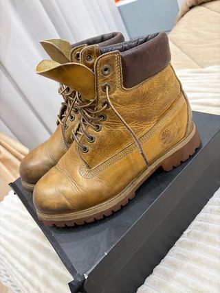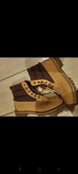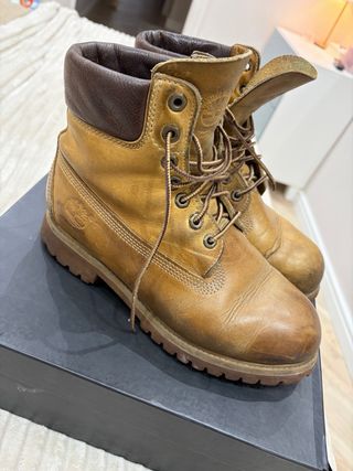 Stivali Timberland da uomo in pelle, perfetti per un look casual. - Colore beige e marrone. - Tomaia in pelle resistente. - Dettagli con cuciture a vista.