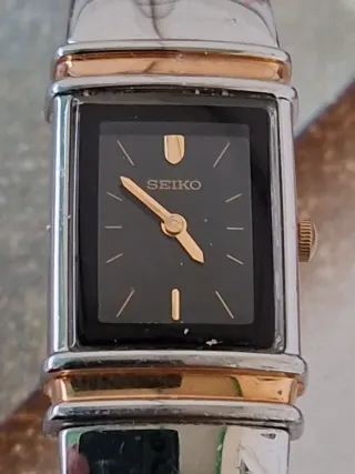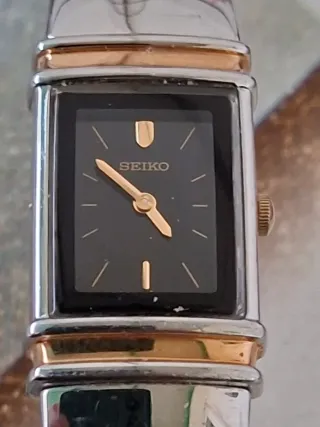 Vendo meraviglioso seiko tank vintage con quadrante blu notte e cinturino in pelle color blu profondo , e cassa e dettagli in corazione oro. Le dimensioni della cassa sono 3.5x2.5cm L'orologio viene spedito senza scatola originale e senza garanzia. Ho sostituito il cinturino con un cinturino in pelle di nuova manifattura in quanto era molto consumato quello originale