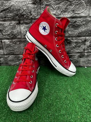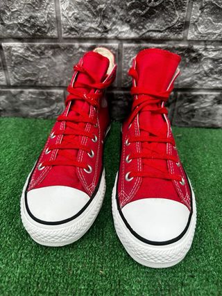 Iconiche Converse All Star alte. - Tomaia in tessuto rosso. - Suola in gomma bianca. - Chiusura con lacci bianchi. - Logo Converse All Star sul lato.