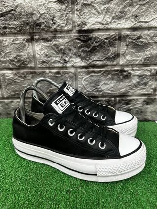 Scarpe Converse Platform basse. - Tomaia in pelle nera. - Suola platform bianca. - Lacci bianchi. - Logo Converse All Star sul tallone e sulla linguetta.