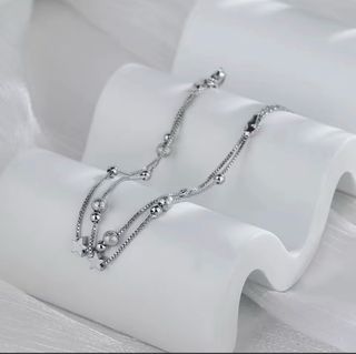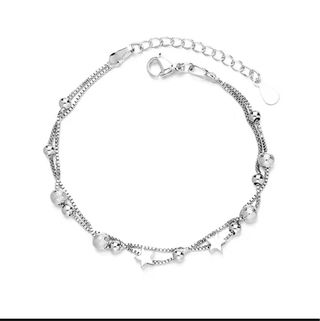 Elegante bracciale in argento 925, perfetto per aggiungere un tocco di luce al tuo look. - Design a doppio filo. - Decorato con piccole sfere e charm a forma di stella. - Chiusura a moschettone con catenella regolabile. - incisione garanzia argento 925 visibile - include confezione regalo