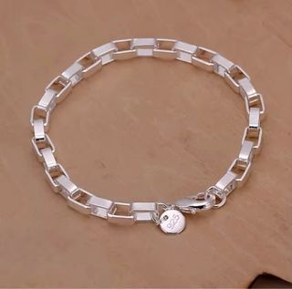 Elegante bracciale unisex realizzato in argento 925. - Design a maglie rettangolari. - Chiusura a moschettone. - Charm rotondo con incisione 925. - include confezione regalo