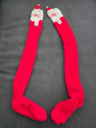 Calzini lunghi natalizi con simpatico disegno di Babbo Natale. - Morbidi e caldi. - Decorazione a tema natalizio.
