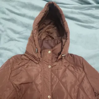Elegante piumino Lizalu da donna con cappuccio, perfetto per le giornate più fredde. Presenta una chiusura centrale con bottoni a pressione e zip laterali per le tasche. - Design trapuntato a rombi - Cappuccio integrato - Chiusura con bottoni a pressione - Zip decorative sulle tasche