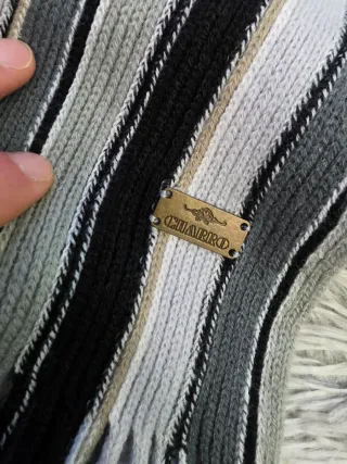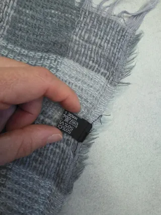 Sciarpa con un motivo a quadri, lavorata a maglia. - Design a quadri. - Lavorazione a maglia.