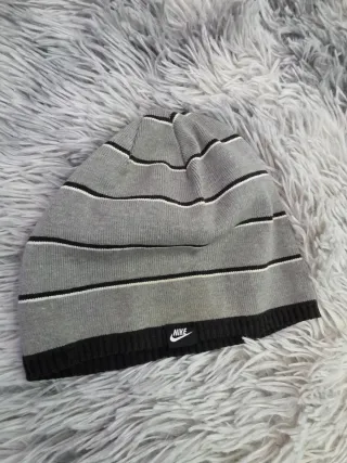 Berretto Nike a righe grigie con logo. - Design a righe orizzontali. - Logo Nike applicato sul bordo.