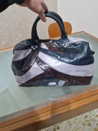 Borsa Patrizia Pepe con un design patchwork unico. - Realizzata in pelle. - Manici arrotondati. - Dettagli metallici. - Chiusura con zip.