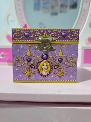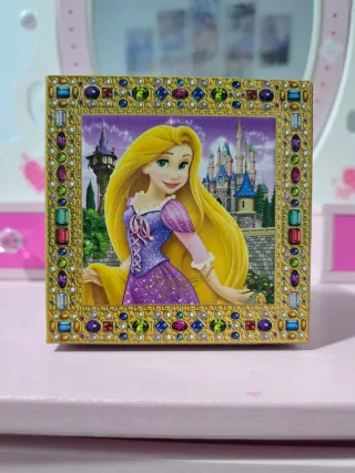 Grazioso portagioie a forma di carillon con l'immagine di Rapunzel. - Cornice decorata con gemme colorate.lo specchio ha una pellicola protettiva