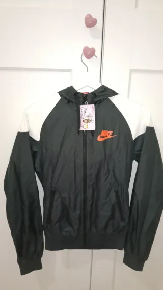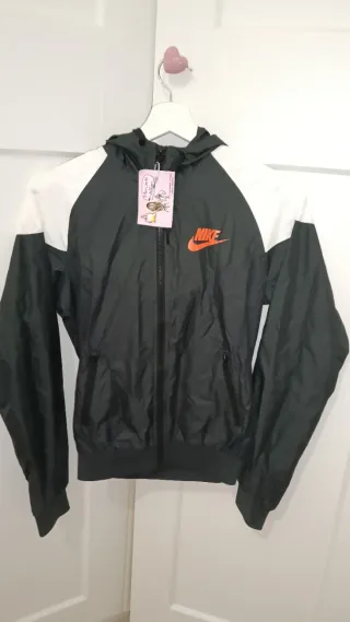 Giacca antivento Nike, perfetta per proteggersi dal vento. - Colore nero e bianco - Taglia XS - Presenta un difetto sul polsino