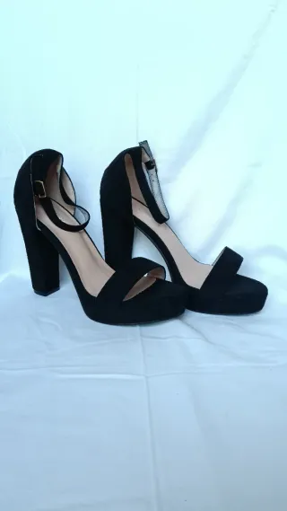 Eleganti sandali con tacco alto e plateau, realizzati in morbido camoscio. - Materiale: camoscio - Dettaglio cinturino alla caviglia - Tacco largo e stabile