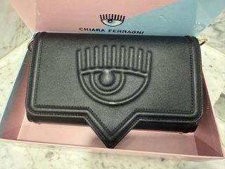 Elegante borsa Chiara Ferragni, perfetta per completare ogni outfit. - Design con iconico occhio in rilievo. - Dettagli in catena dorata. - Presentata nella sua scatola originale.