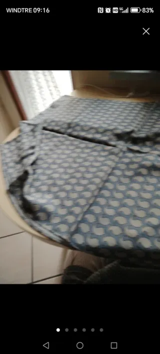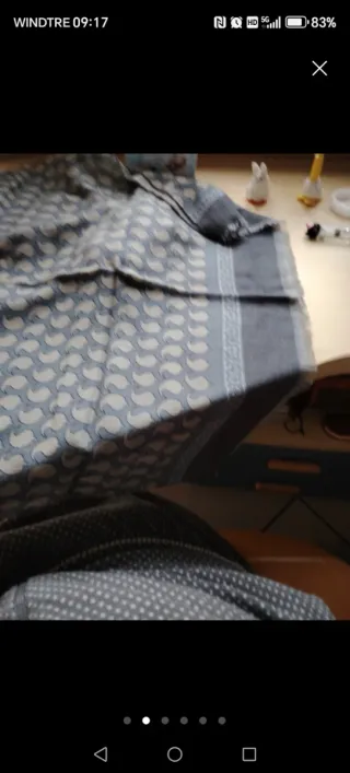 Morbida pasmina in lana con un bel motivo. - Motivo a cerchi blu e bianchi. - Tessuto in lana.