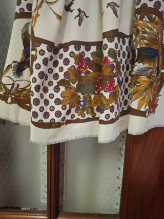 Elegante sciarpa da donna con una bellissima fantasia. - Motivo con uccelli e fiori. - Bordi sfrangiati. Misura 1,10 x 1,10 cm