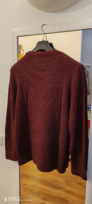 Maglioncino H&M con una trama a quadretti. Il colore è un rosso tendente al bordeaux. - Tessuto a trama. - Maniche lunghe.