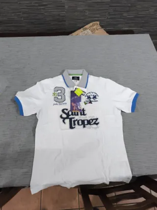 NUOVA CON CARTELLINO Polo La Martina originale, taglia M. Un capo sportivo e alla moda. Larghezza spalle 44 cm Lunghezza 62 cm - Colore bianco con dettagli blu. - Logo La Martina sul petto. - Scritta Saint Tropez sul davanti.