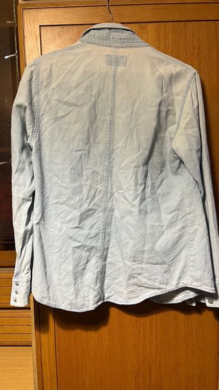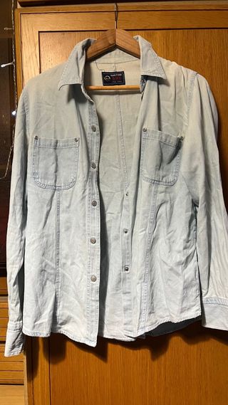 Camicia in denim dal taglio classico. - Chiusura con bottoni. - Due tasche sul petto. - Maniche lunghe con polsini.