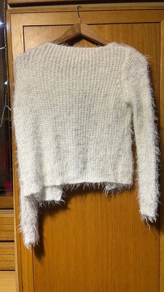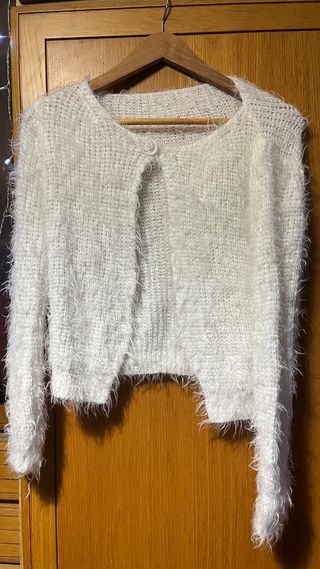 Morbido coprispalle bianco, perfetto per aggiungere un tocco di calore e stile. - Tessuto soffice e peloso. - Design aperto sul davanti. - Maniche lunghe.