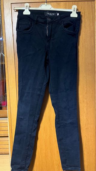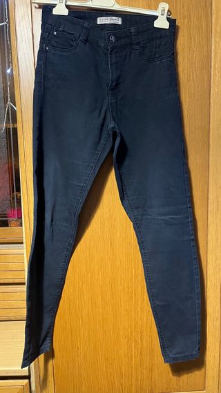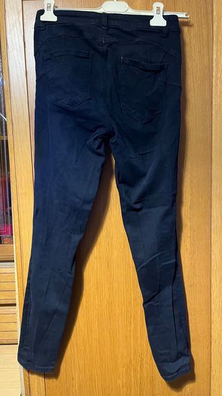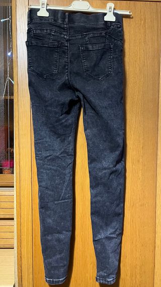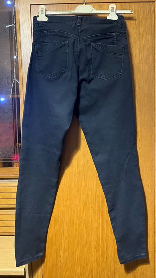 Jeans skinny da donna in denim nero. Modello a vita alta con chiusura a zip e bottone. presenta un po’ di usura sul bottone. - Vestibilità aderente. - Cinque tasche. - Passanti per cintura.