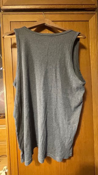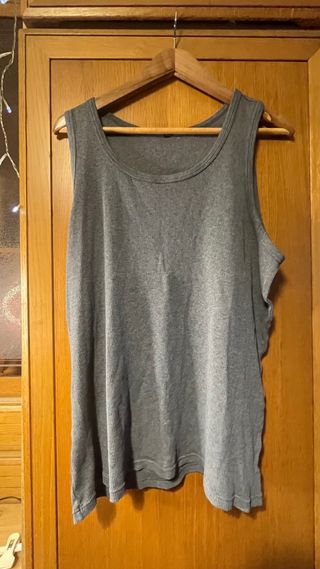 Canottiera grigia con un design a costine. Un capo versatile e comodo. - Tessuto morbido e leggermente elasticizzato. - Scollo rotondo.
