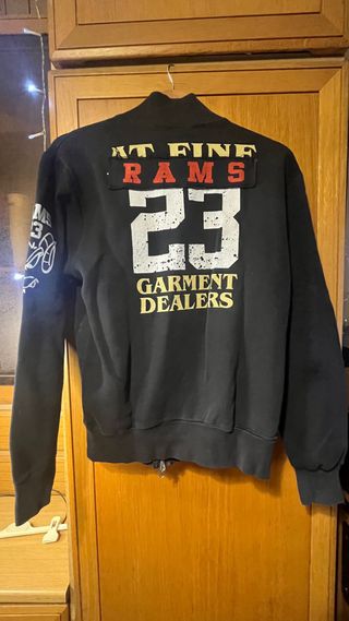Felpa con zip da uomo, con un design grafico sul davanti. - Zip frontale completa. - Tasche a marsupio. - Collo alto. presenta qualche piccolo difetto di usura riportate in foto
