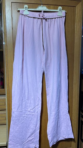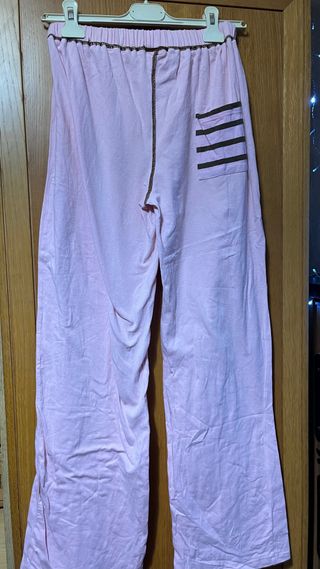 Pantaloni comodi in tessuto morbido. - Vita elasticizzata con coulisse. - Dettaglio con passamaneria lungo i fianchi. - Gamba larga.